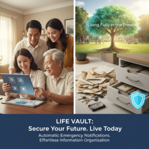 最近見つけたサービスが面白くてさ。安否確認とエンディングノートが連動してるやつ。定期的に「元気ですか?」ってメールが来て、一定期間反応しないと、登録してある情報が自動で指定した人に送られる仕組み。