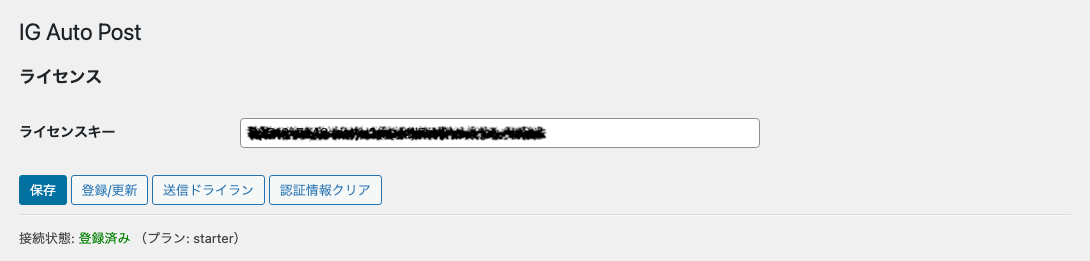 ・IG Auto Post:ライセンスキーを登録します。